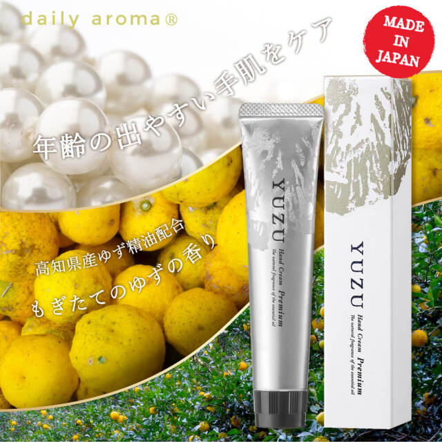 愛媛県産パール*2のメークアップ効果で塗った瞬間から白く透明感あふれる手肌に。ユズ果皮油*1・ユズ果実エキス*1・ユズ種子油*1・ユズ果皮水*1の4つの国産ユズ由来成分が年齢が出やすい手肌をケアする高機能ハンドクリーム。高知県産ユズ精油のみで香りづけした「もぎたてアロマ製法」で、ユズ本来の爽やかな香りを楽しみながらハンドケアしていただけます。