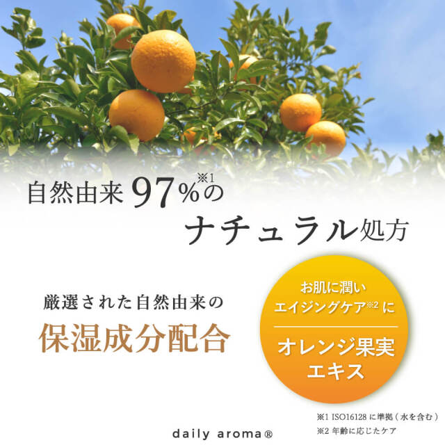 水、ヒマシ油、グリセリン、セタノール、シア脂、(アクリル酸ヒドロキシエチル/アクリロイルジメチルタウリンNa)コポリマー、オレンジ果実エキス、イヨカン果皮油*、オリーブ果実油、プロパンジオール、ステアリン酸グリセリル(SE)、リンゴ酸ジイソステアリル、イソステアリン酸ソルビタン、ポリソルベート60、ブチルカルバミン酸ヨウ化プロピニル、BG【*は植物から抽出した精油を使用しています。】