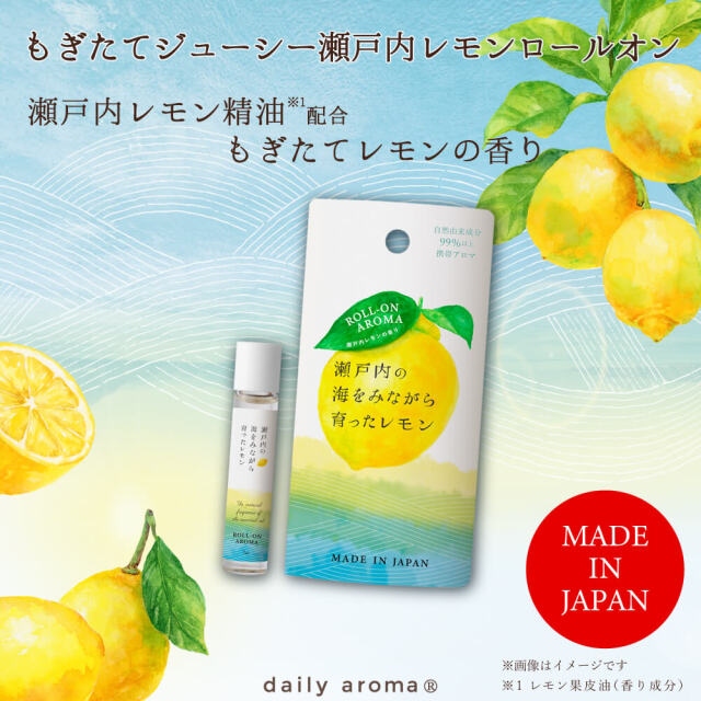 潤ってさわやかに香る。瀬戸内レモン精油配合、瀬戸内レモンの香りのロールオンタイプのアロマ。